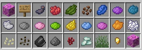 Ниже представлен список всех доступных красителей. Цвет краски будет примерно соответствовать цвету предмета.