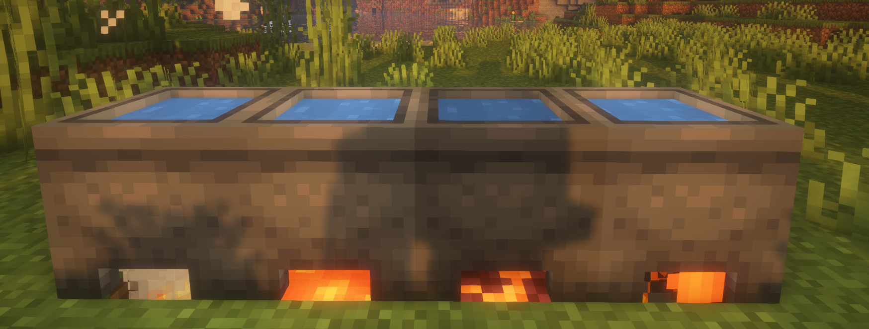 Источник тепла под котлом: открытый огонь (можно зажечь на незераке), блок магмы, блок лавы или костёр.